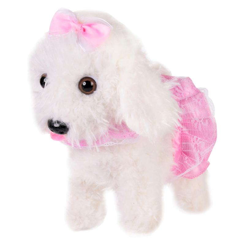 Мягкая интерактивная собачка bambi cl1738a/b на поводке белый
