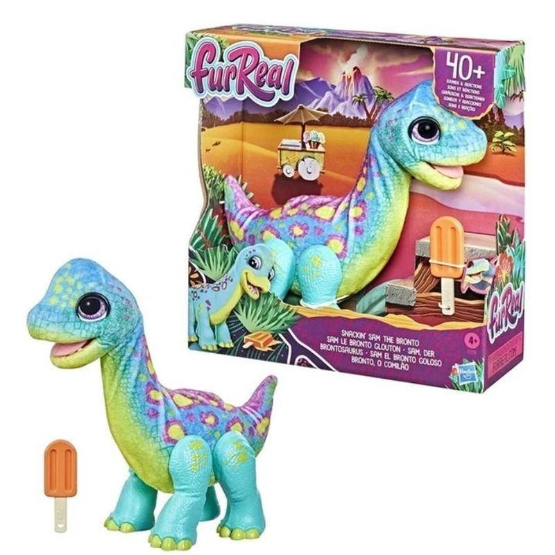 Кілька примірників у наявності Інтерактивний малюк-динозавр із морозивом Snackin' Sam, безумовно, любить поїсти, але найбільше у світі йому подобається проводити час із вами! Він видає всілякі кумедні звуки динозаврів. Після ігрового дня так приємно сісти та погладити м'яку плюшеву шерсть. Дітям сподобається піклуватися про це миле дитинча бронтозавра, яке любить різати шматочки та їсти смачні заморожені ласощі. Іграшки FurReal — це не просто хатні тварини, це друзі, довірені особи, друзі, друзі, діти, поділяють злочини та члени сім'ї. Завдяки неймовірно реалістичним функціям, включно зі звуком і рухом, вихованці FurReal дійсно реагують на дітей, спонукаючи їх брати участь у дбайливій, дбайливій і творчій грі.