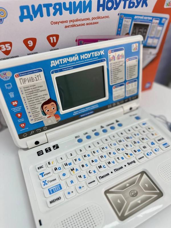 🧑💻НОУТБУК💻 Артикул: 8T1023 ✍️Описание: 🩵Цвет только🤍бело голубой🩵 С помощью обучающего компьютера Ваши детки👼🏻 изучат буквы🔠слова, навчаться писати✍🏻 рисовать🎨 играть различные мелодии и различать музыкальные инструменты🎻🎺 💥ФУНКЦИИ: ⭐️Учим буквы ⭐️Найди букву ⭐️Размести буквы в алфавитном порядке ⭐️Учим слова ⭐️Вставити пропущену букву ⭐️Убери лишнюю букву ⭐️Розстав букви в слова в правильному порядку ⭐️Диктант ⭐️Слова-синонимы ⭐️Слова антономы ⭐️Печатаем на скорость буквы ⭐️Печатаем на скорость слова🔤 ⭐️Урок математики: Вчимо цифри ⭐️Добавление➕ ⭐️Вычитание➖ ⭐️Множение✖️ ⭐️Подол➗ ⭐️стегните числа ⭐️Порахуй фигуры 💥Игры: 🌟Злови червячка 🌟Звездолет 🌟Перегонки🚘🚙 🌟Найди одинаковые фигуры 🌟Раскупори фигуры 🌟Поймай зайчика 🌟Лабиринт 🌟Молния🐍 🌟Головоломка 🌟Хрестики-нулики 🌟Тетрис 🌟Музика🎹 🌟Веселые мелодии🎼 ✨Учим время<unk>️ ✨Календар📆 ✨Калькулятор✖️ 🗃️Комплектация: Ноутбук💻 Мишка🖱️ Инструкция📖 Работает от 3🔋батарейок типу АА (не додаются)