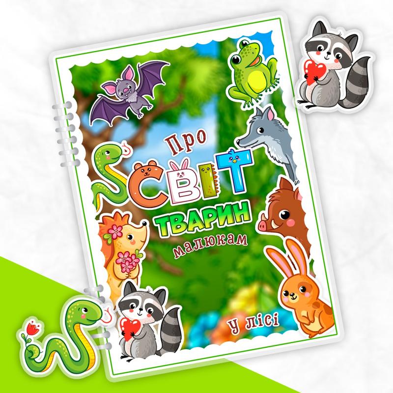Эта книжка игра на липучках поможет изучить какие животные живут в лесу их название, по желанию, желательно собрать из других книжек одну большую книжку.