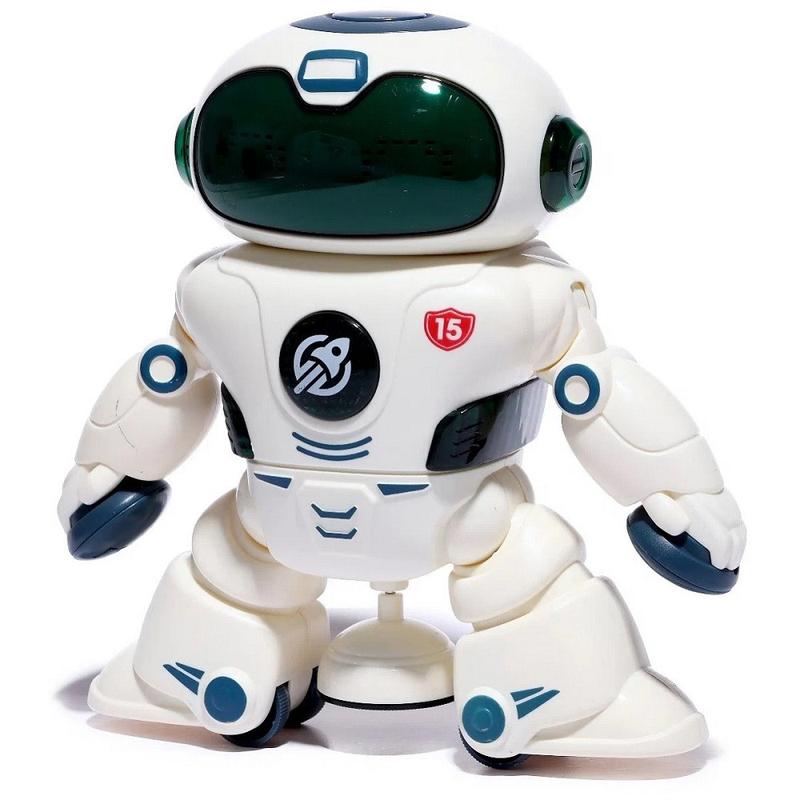 Детский танцующий робот умеет ездить боком, оснащен звуковыми и световыми эффектами. Модель выполнена в белом цвете с лаконичными серыми вставками по всему корпусу. В руках у него световые диски, которые проецируют ярко-синим цветом. Игрушка - робот очень забавная, с музыкой, яркими огнями и может вращаться на 360 градусов. Резкие движения, повороты, музыка и яркие светодиодные вспышки несомненно привлекут к нему еще большее внимание малыша. Работает от 3 батареек типа АА (в комплект не входят). Размер игрушки 18 * 6 * 18.5 см. Размер коробки 18 * 8 * 19 см.