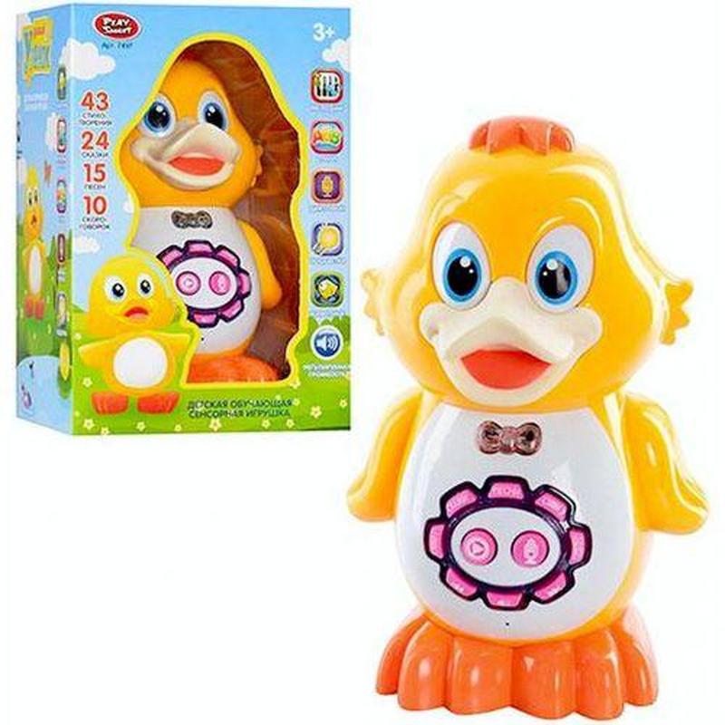 Уценка. (не работает) Интерактивная игрушка "Умный утёнок". Содержит 6 обучающих функций. И более 100 звуковых эффектов: мелодии, 24 сказки, 44 стиха, 15 песен, 10 скороговорок. Так же есть диктофон и подсветка(светящийся галстук и клюв). Выполнена игрушка из качественного пластика._ Бренд: MIC Упаковка: Коробка Цвет: Разноцветный Тип эл-тов питания: Батарейки (АА) Кол-во эл-тов питания: 3 Вес в упаковке: 462 г Габариты в упаковке: 13.5 x 16 x 23 см Cтрана производитель: Китай Материал: Пластик