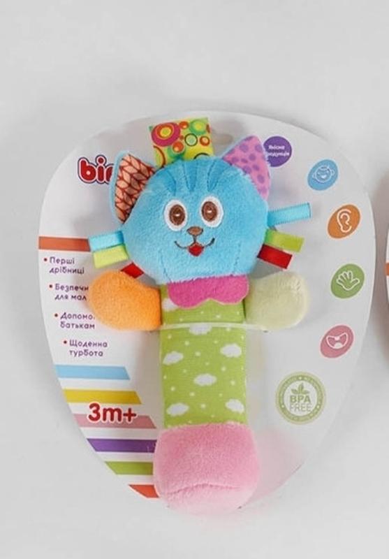 Розмір упаковки:17 см × 9 см × 6 см Упаковка:Пакет Опис Плюшеве брязкальце від "Bimbo" - це новий і найулюбленіший друг для Вашого малюка. Адже кумедний звір подарує дитині багато позитивних емоцій, складе компанію у всіх прогулянках і оберігатиме безтурботний, солодкий сон! Особливості: - сучасний дизайн та гармонійне поєднання пастельних відтінків; - ергономічна зручна форма іграшки; - брязкальце оснащене дзвінкою пискавкою; - звірятко виконано з ніжно текстильного матеріалу, а як наповнювач використовується синтепон.