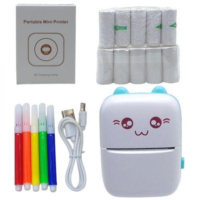 Портативный термопринтер "mini printer" (бумага и фломастеры в комплекте), синий