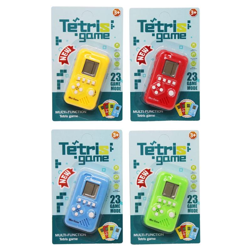 Тетрис "Brick Game", виготовлена в оригінальному мініформаті, завдяки якому іграшка легко поміститься в кишеню. Має 23 режими гри. Серед них: Tetris, Frogger та інші ігри. Безліч рівнів, звуковий супровід (звук можна вимикати). Гумові кнопки. Працює на 2 батарейках типу ААА (не входять до комплекту). Паковання: Планшет Колір: Різнобарв Вага в упаковці: 40 г Габарити в упаковці: 2 x 10 x 16 см Габарити без паковання: 2 x 8 x 4.5 см Страна виробник: Китай Матеріал: комбінований Комплектація: Тетрис