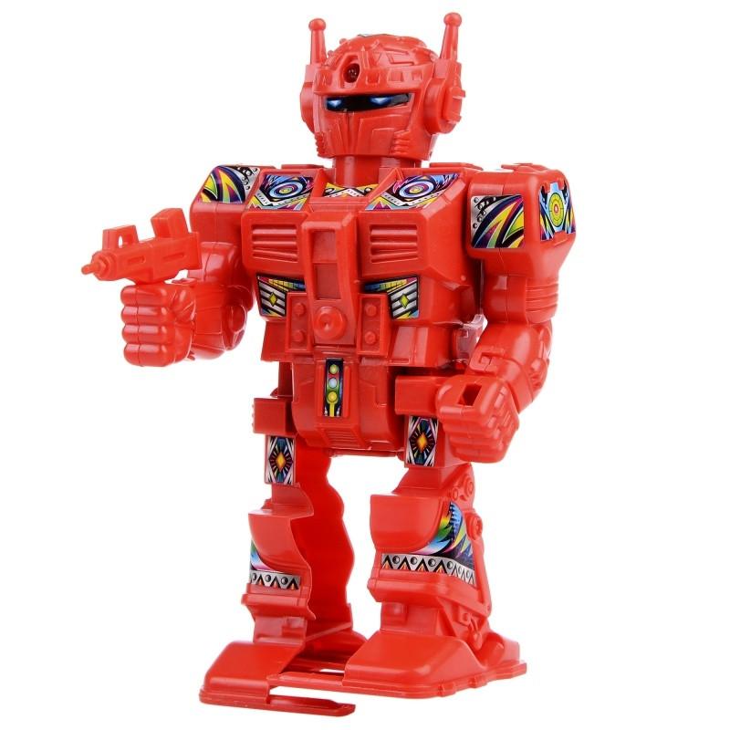 Кумедний робот синього кольору з маленькими ріжками - антенами. У руці тримає невеликий пістолет. Такий собі прибулець, який бажає завоювати світ. Може пересуватися в просторі, рухати руками, видавати звуки і світитися різнокольоровими вогнями. Така іграшка обов'язково сподобається вашій дитині і приверне її увагу. Роботи - інтерактивна іграшка, яку люблять всі сучасні діти. Завдяки книгам і фільмам, а також науковій фантастиці, вони щільно увійшли в наше життя. З такою іграшкою можна придумати безліч цікавих і захоплюючих сюжетів для гри. Робот здатний зробити гру найбільш гострою, динамічною і цікавою. Під час гри у дітей розвивається дрібна моторика рук, уважність, кмітливість і фантазія. Іграшка виготовлена з екологічно чистого пластику, безпечного для здоров'я дитини. Рекомендовано для гри дітям від 3 років.