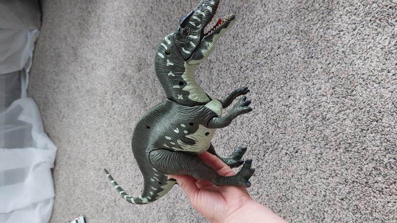 Динозавр в хорошем состоянии, большой.Имеет звук и светится рот.