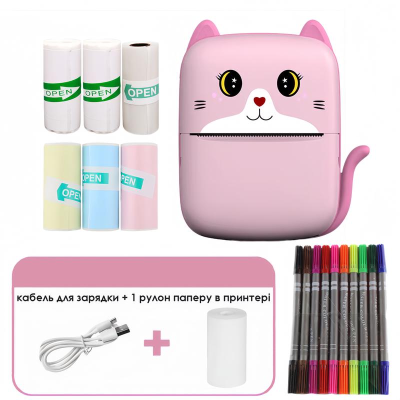Mini printer детский портативный мини принтер для наклеек на блютузе ручной который подключается к телефону Невероятный маленький принтер Mini Printer поможет вашему ребенку почувствовать себя совсем взрослым, а также лучше запомнить буквы, цифры, новые слова, в игровой форме. На нём можно печатать раскраски, прописи, буквы, цифры, любимых персонажей, фотографии и многое другое, что сможет отвлечь вашего ребенка либо помочь в развивающих занятиях. Для более взрослых пользователей, это незаменимый помощник, который позволит записать, передать сообщение, снять снимок, скриншоты. На данном принтере можно печатать любую текстовую или графическую информацию прямо с вашего смартфона через bluetooth соединение. Благодаря своим компактным размерам, блютуз принтер всегда можно положить в карман куртки или небольшую сумку. Никаких проводов, вся работа с мобильным принтером происходит при помощи Bluetooth 4.0 и вашего смартфона. Не стоит беспокоиться, что в нужный момент в карманном принтере закончатся чернила, так как печать происходит без их помощи, а методом нагрева термобумаги. Особенности устройства: - Термопечать без использования краски - Прямая печать со смартфона через фирменное приложение WalkPrint - Портативный и автономный мобильный принтер с встроенным аккумулятором 1000 мАч - Быстрое прямое соединение с вашим смартфоном по bluetooth каналу через фирменное приложение. - Просмотр содержимого перед печатью на экране вашего телефона. - Сохранение истории всей распечатанной информации. Технические характеристики: - Тип: карманный принтер, портативный bluetooth принтер - Тип печати: Термопечать. - Цвет печати: Черно-белая - Ширина печати: 53 мм - Расходные материалы: рулонная термобумага. - Размер бумаги: ширина 57мм. - Способ подключения: по Bluetooth. - Поддерживаемые смартфоны: Android, IOS. - Питание: встроенный аккумулятор 1000 мАч. - Размер: 113x 80 x 38мм. Комплектация: - Портативный термопринтер - 1 шт - Рулонная термобумага белая - 1 шт (в принтере) - Рулонная термобумага белая самоклеющаяся - 2 шт - Рулонная термобумага прозрачная самоклеющаяся - 1 шт - Рулонная термобумага цветная самоклеющаяся - 3 шт (желтая - 1 шт, голубая - 1 шт, розовая - 1 шт) - Двухсторонние фломастеры набор 10 шт - USB кабель для зарядки - 1 шт - Инструкция