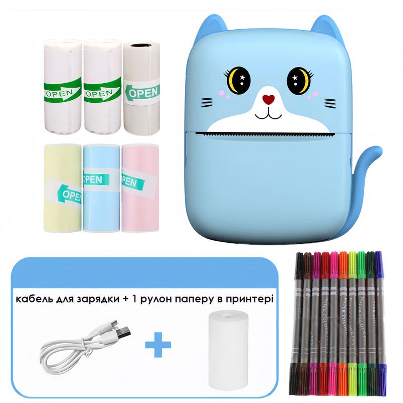 Mini printer детский портативный мини принтер для наклеек на блютузе ручной который подключается к телефону Невероятный маленький принтер Mini Printer поможет вашему ребенку почувствовать себя совсем взрослым, а также лучше запомнить буквы, цифры, новые слова, в игровой форме. На нём можно печатать раскраски, прописи, буквы, цифры, любимых персонажей, фотографии и многое другое, что сможет отвлечь вашего ребенка либо помочь в развивающих занятиях. Для более взрослых пользователей, это незаменимый помощник, который позволит записать, передать сообщение, снять снимок, скриншоты. На данном принтере можно печатать любую текстовую или графическую информацию прямо с вашего смартфона через bluetooth соединение. Благодаря своим компактным размерам, блютуз принтер всегда можно положить в карман куртки или небольшую сумку. Никаких проводов, вся работа с мобильным принтером происходит при помощи Bluetooth 4.0 и вашего смартфона. Не стоит беспокоиться, что в нужный момент в карманном принтере закончатся чернила, так как печать происходит без их помощи, а методом нагрева термобумаги. Особенности устройства: - Термопечать без использования краски - Прямая печать со смартфона через фирменное приложение WalkPrint - Портативный и автономный мобильный принтер с встроенным аккумулятором 1000 мАч - Быстрое прямое соединение с вашим смартфоном по bluetooth каналу через фирменное приложение. - Просмотр содержимого перед печатью на экране вашего телефона. - Сохранение истории всей распечатанной информации. Технические характеристики: - Тип: карманный принтер, портативный bluetooth принтер - Тип печати: Термопечать. - Цвет печати: Черно-белая - Ширина печати: 53 мм - Расходные материалы: рулонная термобумага. - Размер бумаги: ширина 57мм. - Способ подключения: по Bluetooth. - Поддерживаемые смартфоны: Android, IOS. - Питание: встроенный аккумулятор 1000 мАч. - Размер: 113x 80 x 38мм. Комплектация: - Портативный термопринтер - 1 шт - Рулонная термобумага белая - 1 шт (в принтере) - Рулонная термобумага белая самоклеющаяся - 2 шт - Рулонная термобумага прозрачная самоклеющаяся - 1 шт - Рулонная термобумага цветная самоклеющаяся - 3 шт (желтая - 1 шт, голубая - 1 шт, розовая - 1 шт) - Двухсторонние фломастеры набор 10 шт - USB кабель для зарядки - 1 шт - Инструкция