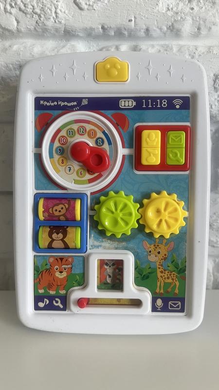 Планшет інтерактивний TK Group казка, пісні. Навчайте свою дитину в ігровій формі з найкращими іграшками від "TK Group"! Адже з інтерактивним планшетом 90660 навчання ще ніколи не було таким веселим і захоплюючим! Особливості: - сучасний дизайн та ергономічна форма; - підсвічування; - аналоговий годинник з тріскачкою; - Бочоночки, що обертаються, із зображеннями звіряток; - суміщені шестерні; - повчальна казка; - дитячі пісеньки українською мовою; - звуковий ефект зйомки. Планшет працює від 2-х батарейок типу "АА" - в комплект не входять. Розмір упаковки: 18 х 4 х 24 см. Упаковка: Коробка