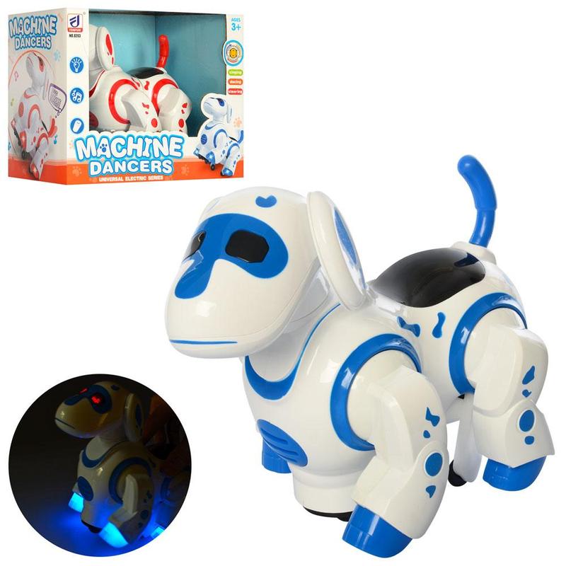 Милая собачка умеет лаять, весело кружится, ездить, светится. Во время движения перебирает лапками, издает звуки и мигает глазками. Двигает головой, хвостом и лапками. Двигается во все стороны, оснащена центральным колесом. При столкновении с препятствиями разворачивается и двигается в другую сторону. Работает от 3 батареек типа АА (не входят в комплект). Размер собачки 20 * 13 * 18 см. Размер коробки 25 * 15 * 16 см.