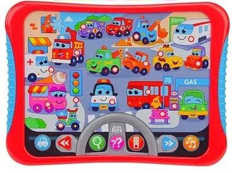 Уникальный интерактивный планшет Hit Pad Супер авто от Kids Hits - очень полезная игрушка нового поколения. Малыш узнает столько нового и интересного и здорово проведет время! Планшет развивает познавательные навыки ребенка, логические, сенсорные и музыкальные способности. Функционал: 70 смешных звуков и фраз 7 зажигательных мелодий и песен 2 увлекательные игры правила дорожного движения Планшет имеет 4 режима работы: названия транспорта игровой режим режим вопросов режим мелодий На планшете ребенок найдет: звуковые эффекты автомобиля, повороты влево и вправо, смешные звуки фразы и самое главное - правила дорожного движения. Все кнопки на экране сенсорны. Планшет озвучен на украинском языке. Большое сходство с настоящим планшетом делает эту интерактивную игрушку одной из самых любимых. Имеется регулировка звука. Кнопка включения и выключения. Удобный формат позволяет брать игрушку с собой куда угодно и играть повсюду. Размер игрушки: 23,8*17*2 см Размер коробки: 25*27*4 см Работает от 3 x AAA батарей, в комплекте