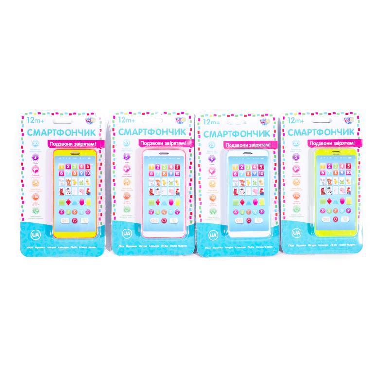 Іграшка "Смартфончик", мікс кольорів. Відтворює музику, вірші українською мовою. Живлення - батарейки. Паковання — коробка. Розмір - 13х2х23 см.