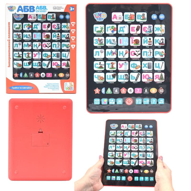 Інтерактивна іграшка "Планшет". Алфавіт, музика, звуки. Різні навчальні програми. Живлення - батарейка. Упаковка - коробка. Розмір - 25х2х20 см.