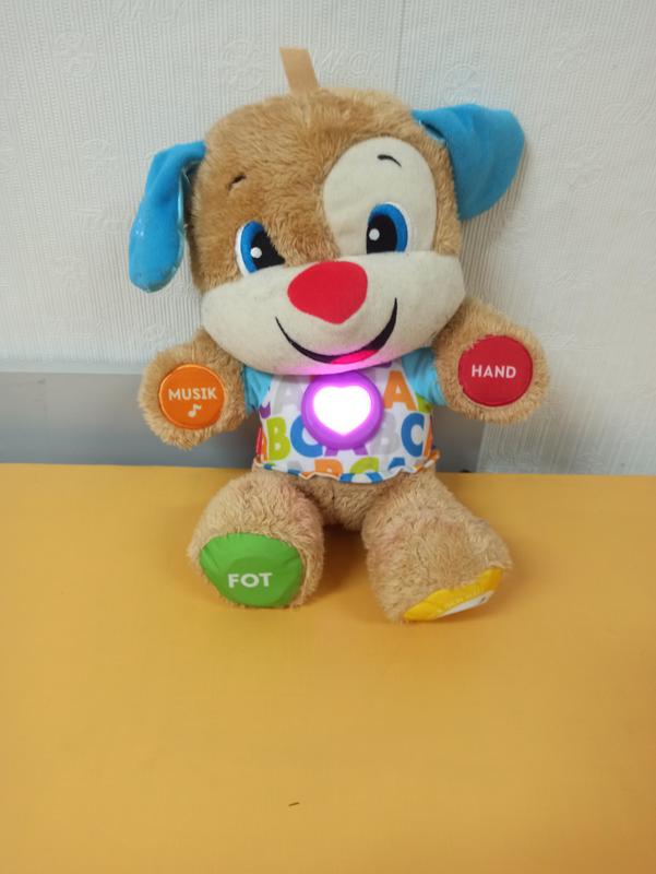 Интерактивная игрушка "Щенок" Fisher Price - позволяет выбирать один из трех уровней игры, который идеально подойдет возрасту малыша. Песни, звуки и фразы будут развлекать малыша, а лапы, живот, уши и сердце с подсветкой будут реагировать на каждое касание ребенка, уча его буквам, цветам, счету. Кажется на швецкий языке, все работает, хороший звук и состояние.