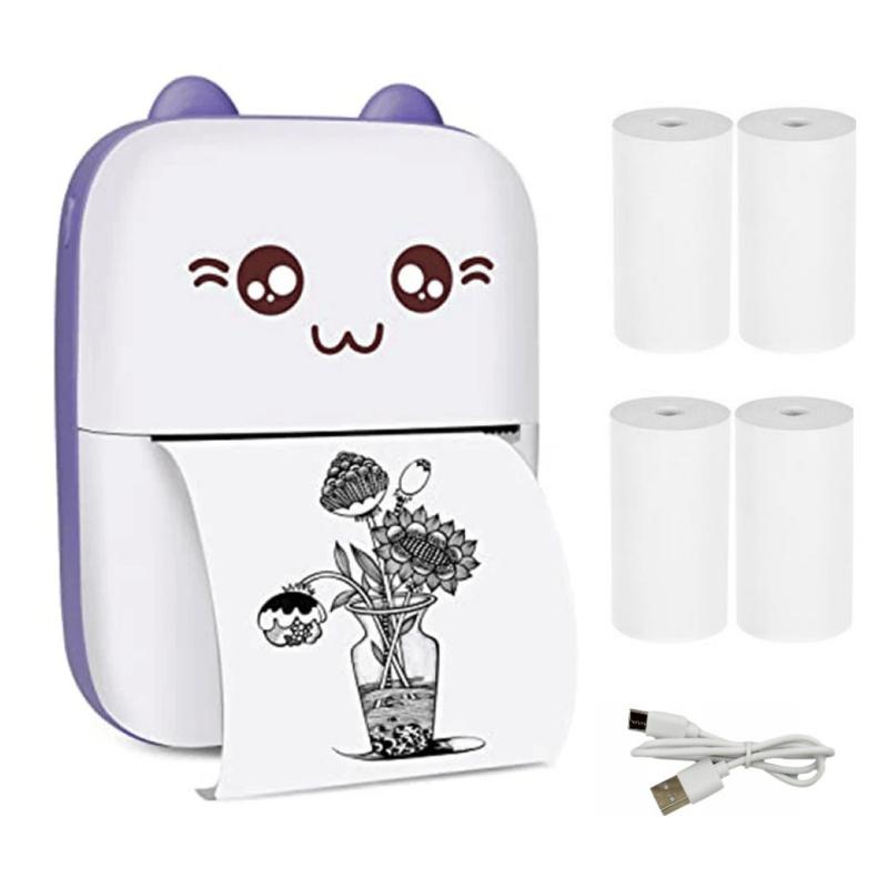 Дитячий міні принтер mini printer термопринтер дитячий котик фіолетовий