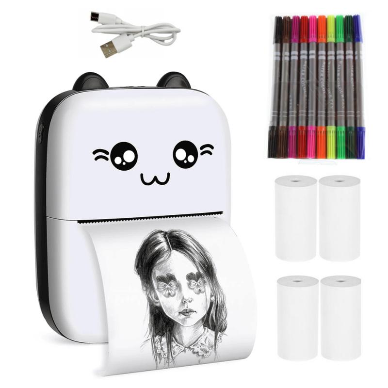 Детский мини принтер Mini Printer термопринтер детский Котик черный Невероятный маленький принтер Mini Printer поможет вашему ребенку почувствовать себя совсем взрослым, а также лучше запомнить буквы, цифры, новые слова, в игровой форме. На нём можно печатать раскраски, прописи, буквы, цифры, любимых персонажей, фотографии и многое другое, что сможет отвлечь вашего ребенка либо помочь в развивающих занятиях. Для более взрослых пользователей, это незаменимый помощник, который позволит записать, передать сообщение, снять снимок, скриншоты. На данном принтере можно печатать любую текстовую или графическую информацию прямо с вашего смартфона через bluetooth соединение. Благодаря своим компактным размерам, блютуз принтер всегда можно положить в карман куртки или небольшую сумку. Никаких проводов, вся работа с мобильным принтером происходит при помощи Bluetooth 4.0 и вашего смартфона. Не стоит беспокоиться, что в нужный момент в карманном принтере закончатся чернила, так как печать происходит без их помощи, а методом нагрева термобумаги. Особенности устройства: - Термопечать без использования краски - Прямая печать со смартфона через фирменное приложение FunPrint - Портативный и автономный мобильный принтер с встроенным аккумулятором 1000 мАч - Быстрое прямое соединение с вашим смартфоном по bluetooth каналу через фирменное приложение. - Просмотр содержимого перед печатью на экране вашего телефона. - Сохранение истории всей распечатанной информации. Технические характеристики: - Тип: карманный принтер, портативный bluetooth принтер - Тип печати: Термопечать. - Цвет печати: Черно-белая - Ширина печати: 53 мм - Расходные материалы: рулонная термобумага. - Размер бумаги: ширина 57мм. - Способ подключения: по Bluetooth. - Поддерживаемые смартфоны: Android, IOS. - Питание: встроенный аккумулятор 1000 мАч. - Размер: 113x 80 x 38мм. Комплектация: - Портативный термопринтер - 1шт. - Рулон термобумаги - 4 шт (1 в принтере + 3 дополнительно). - USB кабель для зарядки - 1 шт. - Инструкция. - фломастеры.
