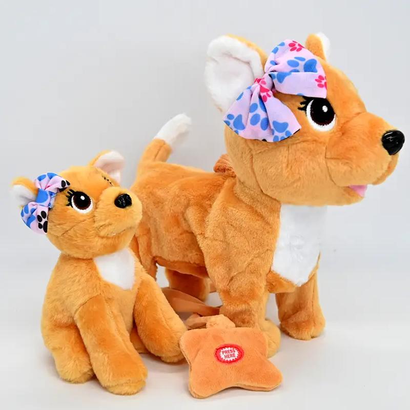 Каждому ребенку нужен друг, с которым он будет весело проводить время. А кто, если не щенок, способен подарить малышу радость и безудержное веселье? Пушистый питомец на поводке - станет лучшим и верным другом, с которым можно играть не только дома, но и вместе ходить на прогулку! Собачка умеет ходить, петь и мило вилять хвостиком. Особенности: - размер - 27х12х26 см; - у плюшевого зверька мягкая и очень нежная на ощупь шерсть; - в комплектацию входит вместительная сумочка-переноска; - маленький щенок в комплекте; - на поводке расположена кнопка, которая активирует движение и пение на английском языке; - работает от 3-х батареек "АА" (не прилагаются); - оригинальная плюшевая собачка станет настоящим другом для юной принцессы.