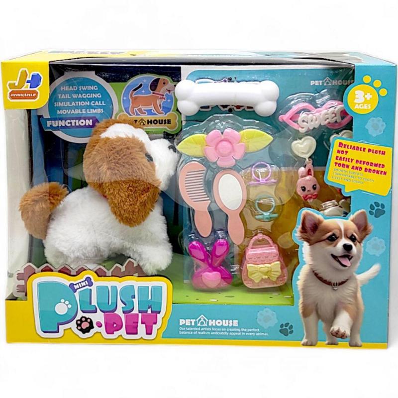 Интерактивная собачка "Plush Pet" – мягкая игрушка, которая точно понравится малышам! Щенок умеет ходить и гавкать, что делает игру еще интереснее. В наборе вы найдете косточку и разнообразные аксессуары (сумочки, кольца, очки, расческии т.д.), предназначенные как для самой собачки, так и для ребенка. Бренд: jinhuangle Упаковка: Коробка Цвет: Коричневый Тип эл-тов питания: Батарейки (АА) Кол-во эл-тов питания: 2 Эл-ты питания в комплекте: Нет Вес в упаковке: 450 г Габариты в упаковке: 26 x 34 x 13 см Cтрана производитель: Китай Материал: Комбинированный Комплектация: Собачка, косточка, аксессуары