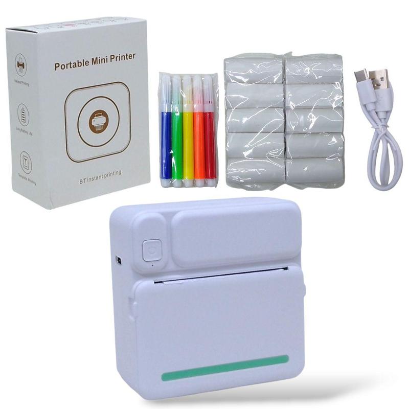 Портативный карманный Bluetooth принтер – идеальное решение для быстрой и удобной печати прямо со смартфона. Благодаря технологии термопечати это устройство не требует использования краски. Вы сможете печатать любые изображения и тексты непосредственно с вашего смартфона, а предварительный просмотр на экране телефона обеспечит уверенность в результате перед печатью. Быстрое Bluetooth – соединение со смартфоном (Android и iOS). Цвет печати: черно-белый. Размер бумаги: ширина 57 мм. Этот портативный принтер станет незаменимым помощником для тех, кто ценит мобильность и простоту. Бренд: MIC Упаковка: Коробка Цвет: Бело-бирюзовый Тип эл-тов питания: Аккумулятор Кол-во эл-тов питания: 1 Эл-ты питания в комплекте: Есть Вес в упаковке: 375 г Габариты в упаковке: 13 x 16 x 6 см Cтрана производитель: Китай Материал: Комбинированный Комплектация: Принтер, проволока type-C, 11 рулонов бумаги, 5 фломастеров