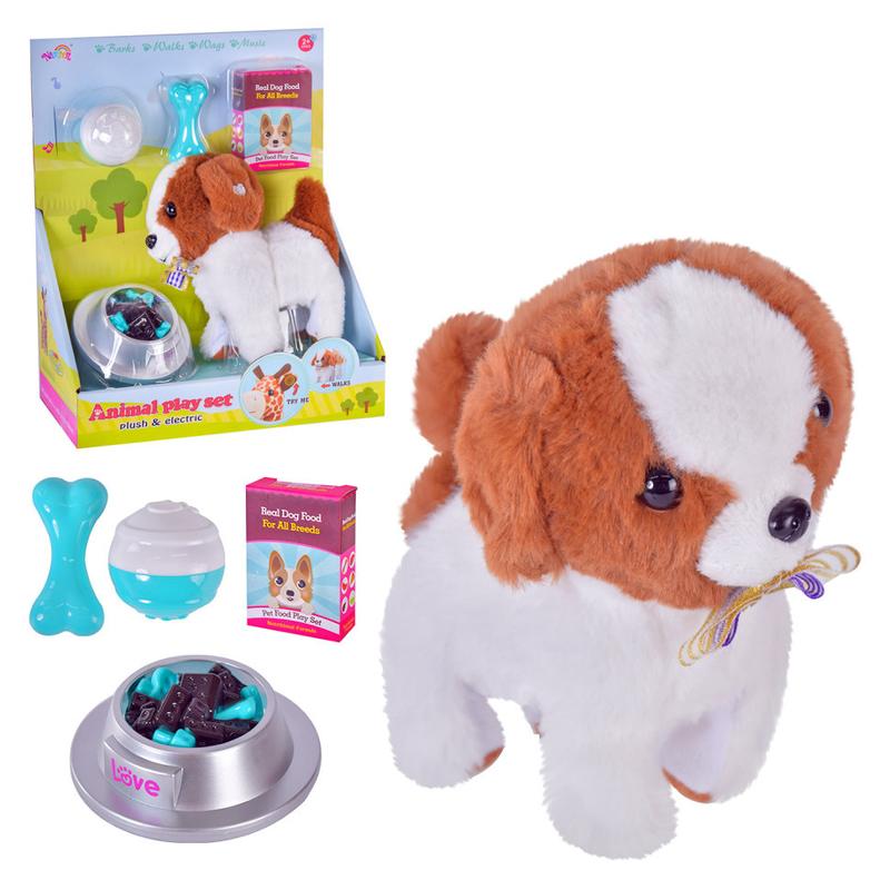 Интерактивная собачка станет отличным другом для повседневных игр вашего малыша. В комплекте вы найдете мисочку, коробочку с кормом для вашего любимца, косточку и мячик, чтобы собачке не было скучно. Стоит только нажать на кнопку в ушке собачки, как она начнет ходить вперед, махать хвостиком и весело лаять. В комплекте: - собачка - мисочка - коробка с кормом - мяч - кость - 2 батарейки типа ААА Размер игрушки: 7*15*13 см Размер коробки: 22*12*26 см