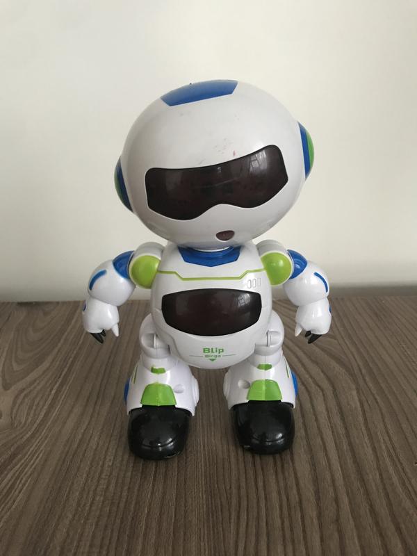 Ходить,танцює розмовляє,світяться очі.Хороший стан,на пульті .