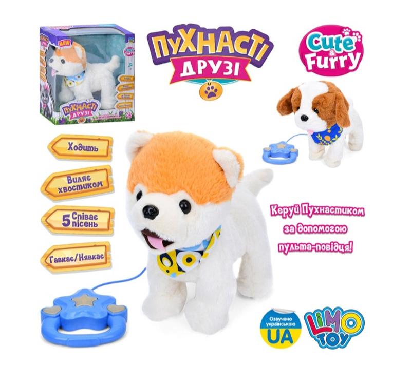 Игрушка интерактивная собачка управление на поводке: виляет хвостиком, гавкает, поет песенку, ходит. Увлекательная игрушка для ваших малышей. размер игрушки 25 см.