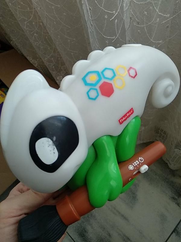 інтерактивний хамелеон,працює,фішок кольорових немає в наявності,але і так можна грати,підставляти різні кольори.