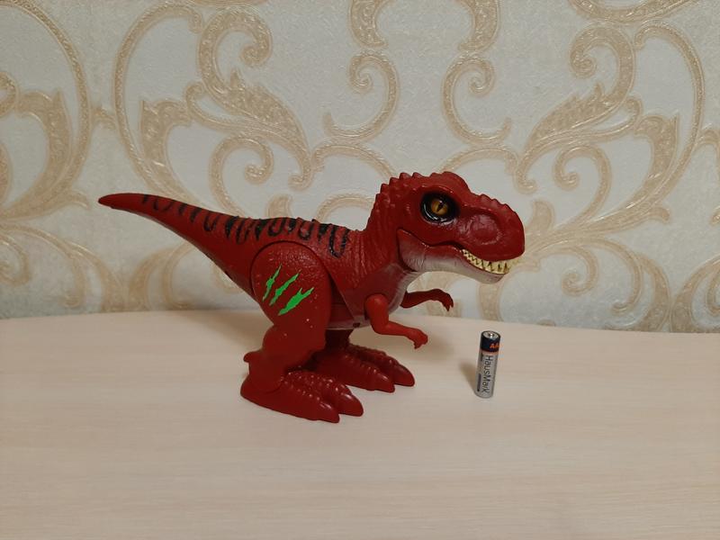 Большой интерактивный робот динозавр ZURU Ходит, рычит, светится лампочка во рту и светятся в темноте царапины на ноге Длина 31 см Высота 18 см