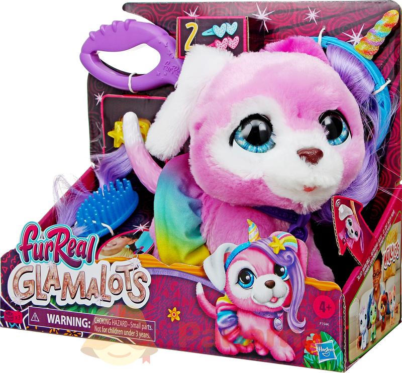 Интерактивная игрушка FurReal Friends Гламурный щенок с аксессуарами понравится юному грумеру. Подойдет для детей, которые любят ухаживать за собаками. Создайте новый образ для вашей собачки с помощью аксессуаров, прикрепите поводок и отправьтесь на прогулку. Ваш питомец будет весело гавкать и повизгивать от восторга! Вы можете придумывать новые уникальные стили для милого щеночка, а также использовать аксессуары из набора, чтобы подчеркнуть свой модный образ. Отдыхаете ли вы вместе дома или отправляетесь на прогулку с пушистым другом, вы непременно отлично проведете время! В комплекте: 1 питомец; 6 аксессуаров для груминга; 1 поводок (требуется сборка). Характеристики продукта: Каждая прогулка с этим питомцем Фурриал Френдс похожа на участие в модном показе. Соберите поводок и толкайте зверюшку, чтобы она шла вперед и демонстрировала окружающим свой модный образ. Во время прогулки питомец издает очаровательные щенячьи звуки. Зверюшка поставляется вместе с расческой, ободком, резинкой для волос и другими тематическими аксессуарами. Игрушка-питомец от Фурриал Френдс станет замечательным подарком для ребенка от 4-х лет