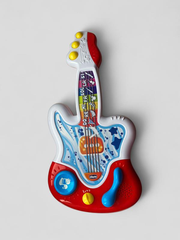 Стан ідеальний (знімали цінничок, трішки пошкодили наклейку). Ні на що не впливає, все працює відмінно . Музична іграшка, за допомогою якої дитина навчиться розпізнавати ноти і музичні інструменти, а також створювати власні композиції. Три режими гри: Вільна композиція – дитина складає свою власну композицію, нота за нотою. Тримай темп – кожна мелодія розділена на короткі частини, доповніть мелодію до кінця, торкаючись нот. Оркестр – грайте на музичних інструментах по черзі чи на всіх одночасно. Понад 90 звуків та мелодій; 7 інтерактивних кнопок, по одній на кожну ноту чи інструмент. Музична іграшка "Моя перша гітара" сприяє розвитку мультисенсорного сприйняття у дітей віком від 9 місяців. Останнє фото ціна на сайті 👉🏼