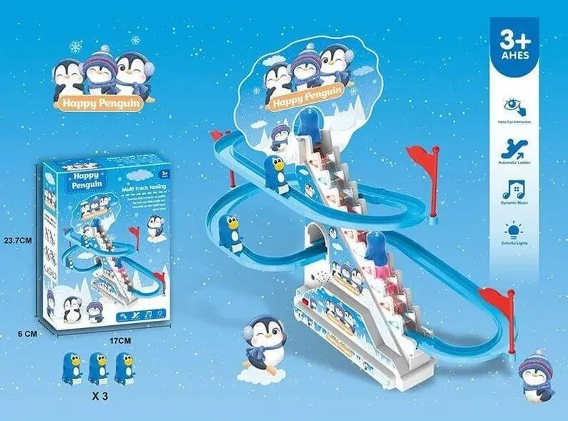 Интерактивная детская игрушка трек с пингвинятами на магнитах с музыкой и световыми эффект...
