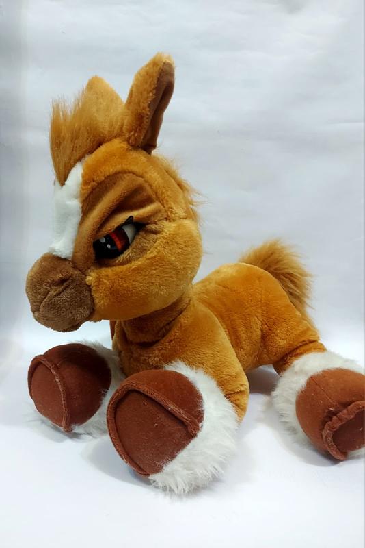 Эта пони , одна из лучших игрушек что есть в продаже , она как живая, будет любимой игрушкой для любого ребенка) Для подарка то что нужно) Состояние идеальное , лошадка очень красивая, из нюансов -потеряны аксессуары, но есть магнитная морковка на которую она реагирует . и крышка на отсеке с батарейками отсутствует, но это на животе и все равно дополнительно застегивается . Не видно абсолютно Функции все выполняет исправно , красавица) Тоффи - уникальная плюшевая лошадка, которая "знает", чего она хочет, и по-настоящему нуждается в любви и заботе Вашего ребенка. Чтобы начать играть с Тоффи, переведите переключатель отсека для батареек на животике лошадки в положение ON. Функции Тоффи следующие. "Я проснулась!" Тоффи готова к игре - она моргает глазками, двигает головой и зовет тебя. "Хочу есть!" Когда Тоффи зовет тебя, моргая глазками и качая головой, она "голодна". Дайте ей "морковку" - она будет шевелить мордочкой, когда жует ее. Когда Тоффи наестся морковки, она поблагодарит тебя кивком головы и радостным ржанием. Если Тоффи не хочет кушать, она будет раздраженно фыркать. "Расчеши меня!" Тоффи нравится быть причесанной и расчесанной. Расчешите ей спинку щеткой. Лошадка поблагодарит тебя движением головы, глаз и ушек. "Я боюсь!" Если Тоффи услышит громкий звук, она испугается, будет ржать, ее глазки закроются и ушки задрожат. Чтобы ее успокоить, попробуй почесать ей спинку или дай морковку. "Мне скучно, хочу играть!" Если Тоффи зовет тебя, а ты не хочешь играть, лошадке становится скучно, глаза слипаются… она засыпает! Если же Тоффи уснет, ее можно разбудить громким звуком или почесав спинку (она может проснуться в только течение 1 мин. после того, как заснула). "Хочу спать!" Если никто не играет с Тоффи, она засыпает, закрывая свои глазки и начиная ровно и спокойно дышать. Если Вы хотите быстро разбудить лошадку или, наоборот, чтобы она быстро заснула, нажмите на кнопку в основании ее хвоста и подержите примерно 3 с. Чтобы "перезапустить" Тоффи, переведите переключатель на ее животике в положение OFF, а затем вновь в положение ON. Внутри корпуса нет жестких механизмов. Свойства: глаза моргают, двигаются голова, мордочка, уши, дрожат уши и тело, датчики звука, микрофон.