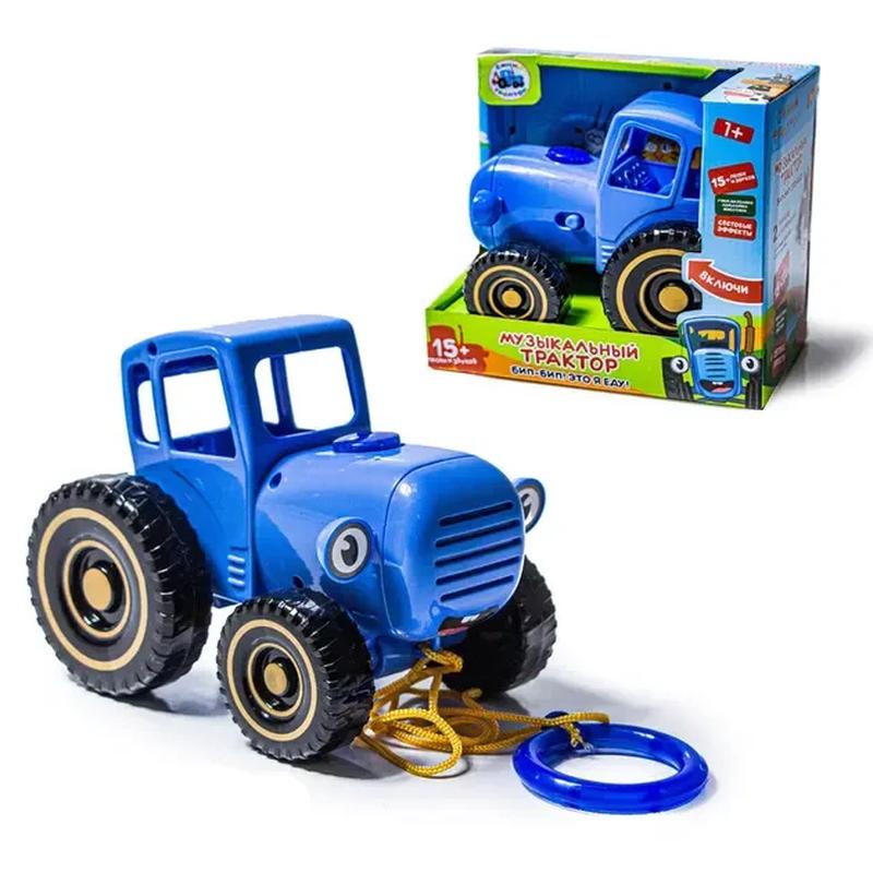 Інтерактивна музична іграшка Синій трактор Іграшка Синій трактор - це яскрава та захоплююча іграшка для хлопчиків та дівчаток, яка сподобається дітям будь-якого віку. Вона виконана як персонажа улюбленого мультфільму. Трактор із синьою кабіною та колесами, які обертаються, коли іграшка рухається. Іграшка Синій трактор виготовлений із щільного пластику, який прослужить довгий час. Іграшка чудово підійде для гри вдома, на вулиці чи в саду. Ця іграшка стане чудовим подарунком для маленького автомобіліста, який мріє стати справжнім фермером чи будівельником! Короткі характеристики: • світлові ефекти працюють від батарейок (є в комплекті); • розмір упакування: довжина 23 см; ширина 10 см; висота 20 см; • вільний рух; • світлові та звукові ефекти; • 2 пісні з мультфільму - "Синій трактор" та "По полях"; • 13 звуків - вчимо назви свійських тварин; • кнопка з регулюванням гучності; • у комплекті мотузка та кільце для катання трактора.