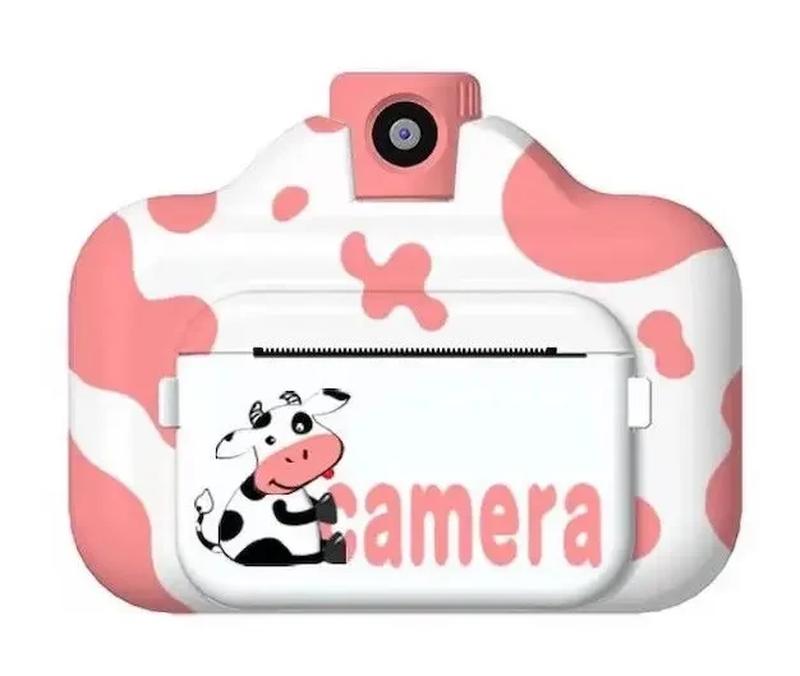 Фотокамера детская с мгновенной печатью снимков, wi fi, бело-розовая коровка