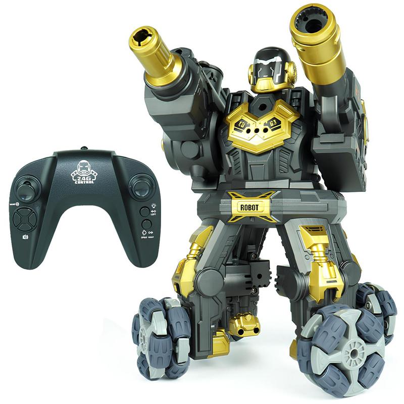 Наш видеообзор: Презентация от производителя: Многофункциональный Робот Автобот - интерактивная игрушка на радиоуправлении для детей. Особенностью робота является возможность стрелять водяными пулями из правой пушки и возможность выпускать водяной пар из левой пушки. У робота есть колеса с роликами, благодаря чему, робот может ездить не только в любую сторону, но еще и вращаться на месте и ехать боком. Есть боевой режим. Лампочки на груди робота показывают количество оставшихся жизней. Можно играть с другими роботами с друзьями. В случае попадания пулей в переднюю часть робота, снимается 1 жизнь. Как сделать водяные пули: 1. Раскрыть пакет с пульками. 2. Насыпать пульки в любую емкость. 3. Залить водой и ожидать ~3 часа. 4. Слить воду. 5. Водяные пули готовы. Характеристики: - Высота робота: 24 см. - Толщина робота: 21 см. - Ширина робота: 16 см. - Диаметр колес: 54 мм. - Стреляет водяными пулями. Можно играть с друзьями с боевым режимом. Лампочки на груди робота показывают количество оставшихся жизней. В случае попадания пулей в переднюю часть робота, снимается 1 жизнь. - Пускает водяной пар (нужно залить воду в бак с помощью бутылочки-пипетки). - Время работы от аккумулятора: ~25 минут (зависит от стиля игры). - Время полной зарядки аккумулятора: от 2.5 до 3 часов. - На колесах размещены ролики. Благодаря этому робот может двигаться вперед, назад, боком влево, боком вправо и даже вращаться на месте. - Музыкальное сопровождение. Его можно включить/выключить. - Снизу робот светит различными цветами. - Есть режим демонстрации. - Пульт управления работает от двух батареек типа АА (батарейки не поставляются производителем). Частота пульта 2.4 GHz. - Пульт управления работает на расстоянии до 30 метров. - В роботе встроенный аккумулятор 1200 mAh, 3.7V, тип 18650, Li-ion. - В комплекте есть зарядный шнур USB для аккумулятора длиной 40 см. - 4 двигателя (по одному двигателю на каждое колесо, полный привод). - Вес робота: 670 г. - Материал изготовления робота: ABS-пластик Комплектация: 1. Робот-автобот с аккумулятором. 2. Пульт управления, работает от двух батареек типа АА (батарейки не поставляются производителем). 3. Пакет с водяными пулями. 4. Бутылочка-пипетка для залива воды в бак. 5. Зарядный USB шнур для аккумулятора робота длиной 40 см. 6. Отвертка для откручивания/закручивания болтов. 7. Инструкция на английском.