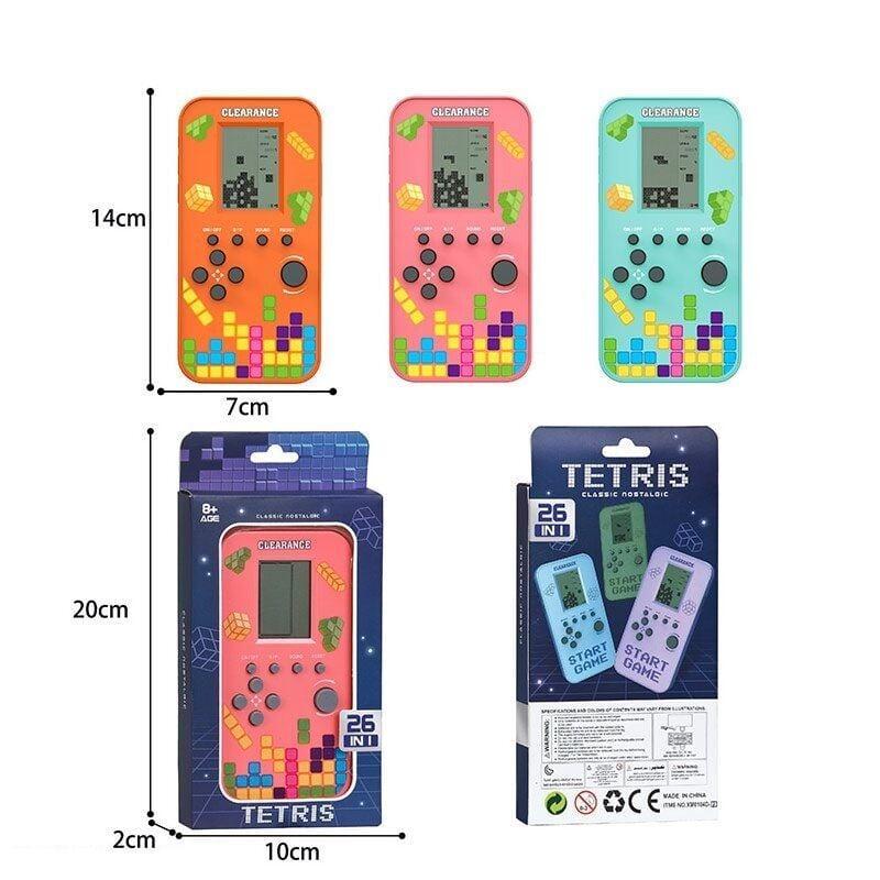 Тетрис – легендарная игра нашего детства, никогда не теряющая своей популярности! Эта компактная электронная игра с пиксельным экраном переносит в мир классических аркадных развлечений. Особенности: Особенности: - тетрис размером 7х1х14см; - 2 режима работы: со звуком и без; - набор классических игр; - разные уровни скорости и сложности. Функции кнопок: - кнопка on/off - включает и выключает консоль - управление – вниз, вверх, вправо, влево - reset – перезапускает выбранную игру - s/p – выбирает игру и ставит на паузу - sound – включает-выключает звук. Работает тетрис от 2 батареек типа ААА – не входят в комплект. * Характеристики и комплектация товара могут изменяться производителем без уведомления.