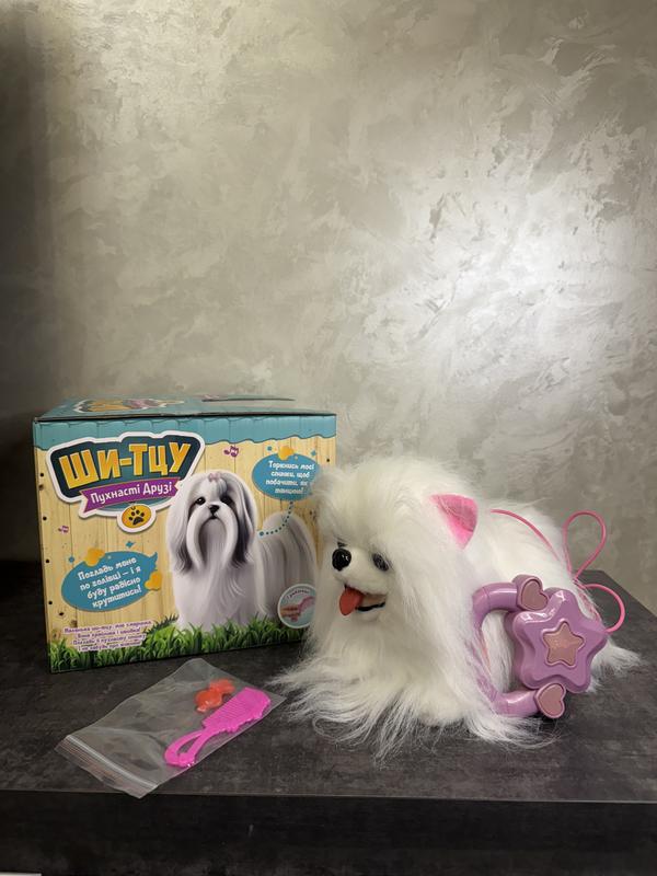 Познайомся з милим цуценям Ши-Тцу — пухнастим другом, який стане справжнім улюбленцем кожної дитини! Іграшка виглядає як справжнє маленьке собаченя з довгою м’якою шерстю, яке любить, коли його гладять і граються з ним. • Реалістичний дизайн та приємна на дотик шерсть • Реагує на дотики — рухається і видає звуки, як справжнє цуценя • Весело гавкає, коли з ним граються • 3 веселі пісеньки, 2 сенсорні зони, 3 драйвові мелодії