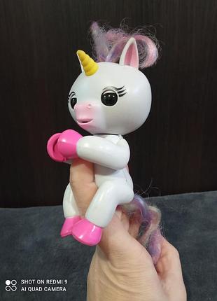 маленькая ручная единорожка, на пальчик, издает различные звуки, крутит головой