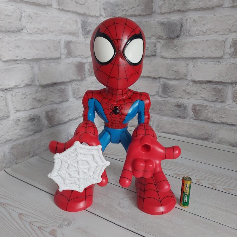 Фигурка Человек-паук из серии "My First Spider-Man". В хорошем состоянии. Светятся глаза, разговаривает на английском языке. В комплекте только одна стрела-паутина. Высота фигурки 28 см. Батарейки в комплекте.