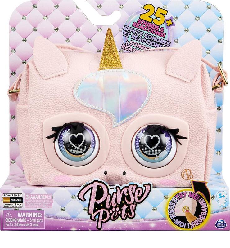 Purse Pets від Spin Master — це неймовірний переворот у світі моди. Сумочки у вигляді милих тварин стануть не тільки стильним аксесуаром, але і відмінною іграшкою і справжнім улюбленцем! Інтерактивна сумочка реагує на дотики і кліпає оченятами, а ще видає більше 25 звуків і реакцій. У сумочки є три режими: в дорозі, чарівне дзеркало і подіумна хода. Доторкайся, гладь сумочку, став їй питання — вона буде реагувати і відповідати тобі. Стильний єдиноріг Гламикорн стане ідеальним доповненням до будь-якого образу. Гламикорн буде відмінним другом юної модниці, адже він буде кліпати оченятами і видавати милі звуки, поки ти займаєшся своїми справами. Доторкнись до чола єдинорога, і він подарує повітряний поцілунок! Сумочка виготовлена з екошкіри, а металева фурнітура, яскраві акценти і регульована довжина ручки допоможуть завершити стильний образ.