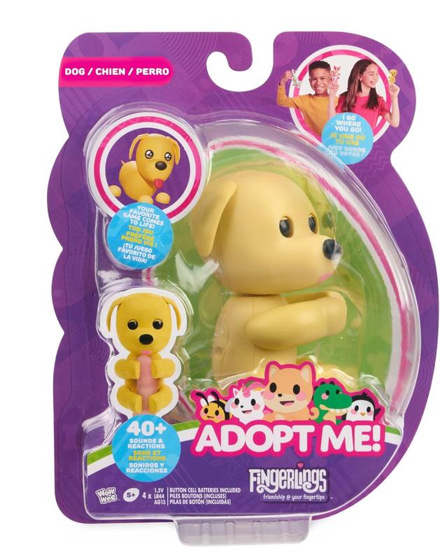 Улюблена гра оживає. Тепер фанати Adopt Me можуть збирати та доглядати за своїми улюбленими домашніми улюбленцями у реальному житті разом із Fingerlings. Цей милий інтерактивний песик оживає прямо на вашому пальці! • 40+ звуків та реакцій. Почуйте, як ваш песик гавкає, виює і навіть «цілує» вас. Дотик оживляє його — він рухає головою, моргає та видає безліч милих звуків. • Доглядайте за своїм улюбленцем, як у грі. Питомчик реагує на дотики завдяки сенсорам на голові та в роті. Погладьте його, щоб показати любов. Годуйте, цілуйте та грайте в «ку-ку». Він також має датчики руху, які реагують на перевертання, трясіння та заколисування. • Вони завжди поруч. Мега портативний розмір дозволяє брати песика будь-куди з собою.