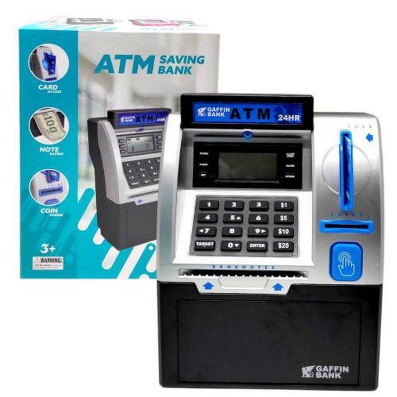 Эта интересная и многофункциональная копилка надежно сохранит финансы вашего малыша! Игрушка стилизована под банкомат, а в набор даже добавлены игрушечные деньги и банковская карта. Так ваш ребенок научится ответственно относиться к деньгам и получит основы навыков использования банкомата. В комплекте присутствует инструкция на английском языке, с упругими инструкциями того, как работают функции банкомата. Дефолтный пароль для открытия сейфа - 0000. Игрушка подсвечивается и имеет звуковые эффекты для каждого нажатия на кнопку, как настоящий банкомат. Бренд: MIC Упаковка: Коробка Цвет: Черный Тип эл-тов питания: Батарейки,АА Кол-во эл-тов питания: 3 Эл-ты питания в комплекте: Нет Вес в упаковке: 867 г Габариты в упаковке: 15.3 x 22 x 29.2 см Габариты без упаковки: 11 x 19 x 25 см Cтрана производитель: Китай Материал: Пластик Комплектация: Банкомат, деньги, инструкция