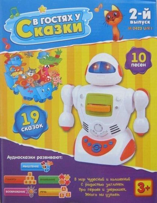 Игра - робот «В гостях у Сказки» + наклейки, раскраски №2(2-й выпуск) Замечательная игра-робот В гостях у Сказки входит в серию фонографических игр. Оригинальный робот будет помогать Вашему малышу в обучении. С помощью такой развивающей игрушки Ваш малыш услышит множество сказочек и песенок , что поможет развить воображение и музыкальный слух. 19 сказок и 10 песен Сказки: 1. Три поросёнка 2. Баба Яга и ягоды 3. Бременские музыканты 4. Где обедал воробей 5. Сказка о глупом мышонке 6. Игра в стадо 7. Как лиса и овца волка наказали 8. Как мужик гусей делил 9. Кот и Лиса 10. Кот, Козёл да Баран 11. Котёнок по имени Гав 12. Коза-дереза 13. Кто сказал Мяу? 14. Лиса и Волк 15. Мельник, мальчик и осёл 16. Скрюченная песня 17. Телефон 18. Зимовье зверей 19.Хаврошечка Песни: 1. Чунга-чанга 2. Голубой вагон 3. Кабы не было зимы 4. Мальчик стричься не желает 5. Песня Деда Мороза 6. Песня о лете 7. Расскажи , Снегурочка 8. Точка, точка, запятая 9. В лесу родилась ёлочка 10. Зимняя сказка Рекомендуется для детей от года. Работа происходит от трех батареек АА(в комплект не входят) Размеры игрушки: 410х270х130 мм. Производитель: Joy Toy