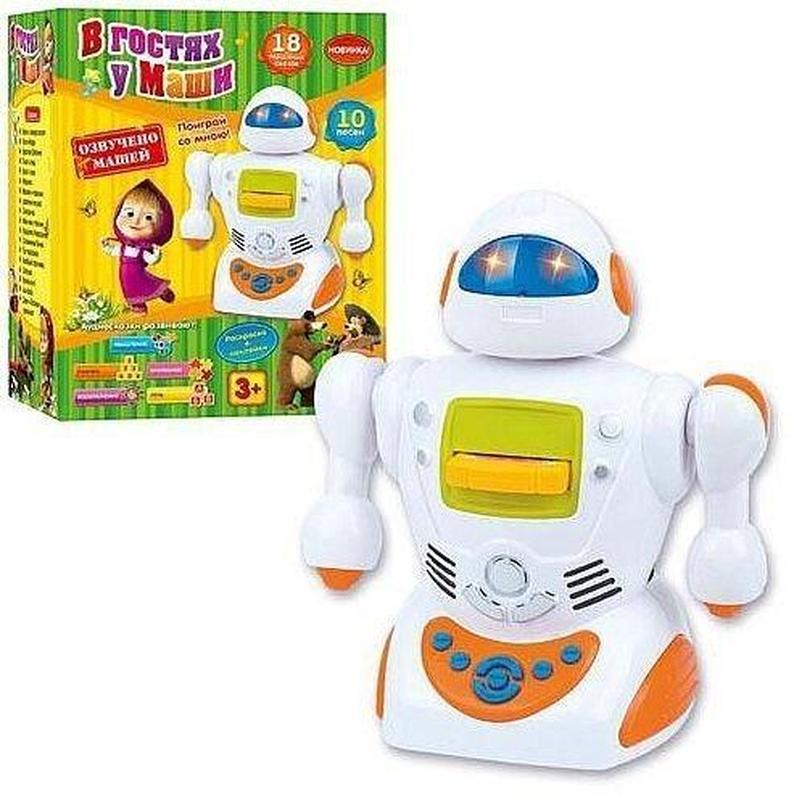 Игра - робот «В гостях у Маши» + наклейки, раскраски Замечательная игра-робот 1412 В гостях у Маши входит в серию фонографических игр, озвученных Машей из мультфильма Маша и Медведь. Оригинальный робот будет помогать Вашему малышу в обучении. С помощью такой развивающей игрушки Ваш малыш услышит множество сказочек и песенок исполненных любимицей Машей с любимыми шутками и прибаутками, потренируется в сообразительности и наблюдательности, поможет развить воображение и музыкальный слух. 18 сказок (рассказывает Маша, в каждой сказке ее обращение-предисловие в шуточной форме и сами сказки немного на новый лад, с шутками) и 10 песен Сказки: 1. Волк и семеро козлят 2. Гуси-лебеди 3. Красная шапочка 4. Лиса и заяц 5. Волк и лиса 6. Морозко 7. Вершки и корешки 8. Царевна-лягушка 9. Снегурочка 10. Мальчик-с-пальчик 11. Крошечка-хаврошечка 12. Соломенный бычок 13. Три поросенка 14. Храбрый портняжка 15. Золушка 16. Калиф-аист 17. Али-баба 18. Джек и бобовое зернышко Песни: 1. Песенка про следы 2. Песенка про варенье 3. Песенка про чистоту 4. Песенка про икоту 5. Фантазия 6. Один дома 7. Песенка про дружбу 8. Три желания 9. Коньки 10. Новогодняя песня Рекомендуется для детей от года. Работа происходит от трех батареек АА(в комплект не входят) Размеры игрушки: 410х270х130 мм. Производитель: Joy Toy