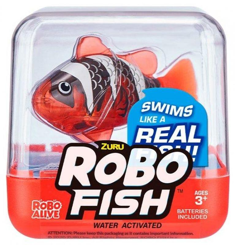 Robo Fish Інтерактивна Іграшка Рибка Робот — весела розвага для всієї родини. Пам'ятаєте хітову іграшку 2012 року? Тепер вона вдосконалена, має реалістичний зовнішній вигляд, обладнана новітніми унікальними технологіями робототехніки та навіть змінює колір у воді! Просто кидайте Вашу роборибку у воду та розважайтеся. Або збирайте повний акваріум робовихованців! У разі потрапляння у воду рибка починає реалістично рухатися й змінює колір. Рибка рухається в 5 напрямках і занурюється на глибину до 180 см. Щоб вимкнути рибку, досить витягнути її з води та просушити. У рибки є режим економії заряду — вона автоматично вимикається після 4 хвилин перебування у воді. Для веселих ігор у ванній або басейні. Чудова ідея для кумедних розіграшів. В асортименті 6 кольорів рибок. Живлення — 2 батарейки AG13/A76/LR44 (входять до набору) Рекомендовано для дітей від 3 років.