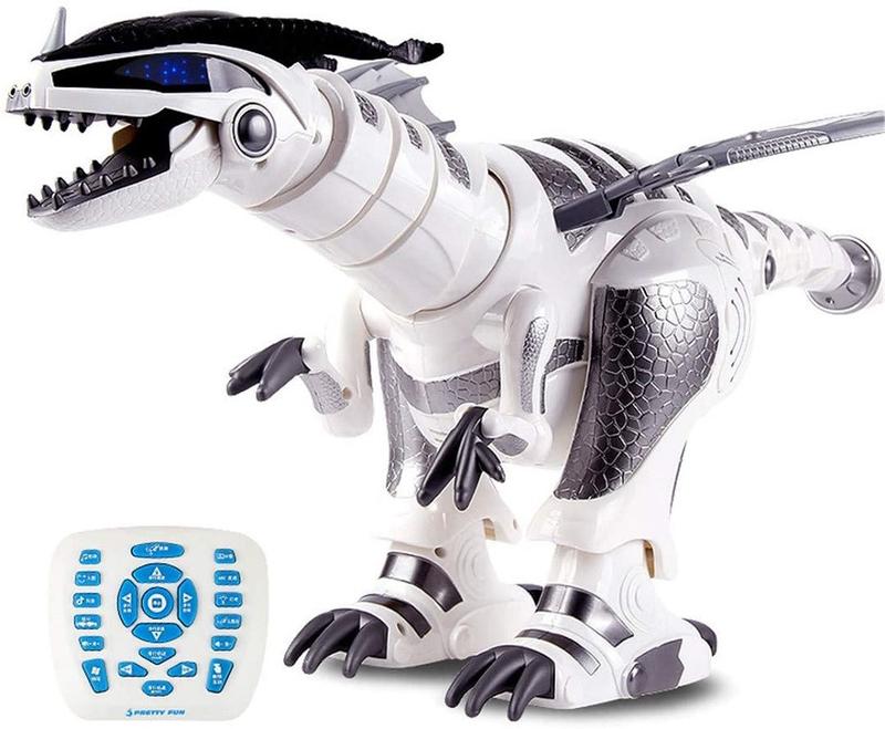 Робот динозавр на радиоуправлении отличный подарок, который обязательно понравиться не только детям, но и взрослым! С помощью пульта управления осуществляются управление динозавром, а именно: виляет хвостом, движение передними лапами, может ходить вперед -- назад, светятся глаза, звук ходьбы, звучит голос на английском языке, можно программировать. Если поднести руку к голове робот динозавр начинает реагировать на прикосновения. В коробке вы найдёте: динозавра, пульт управления, USB шнур для зарядки аккумулятора и сам аккумулятор. Размер робота динозавра 65 * 27 см. Размер коробки 46 * 17 * 32 см.