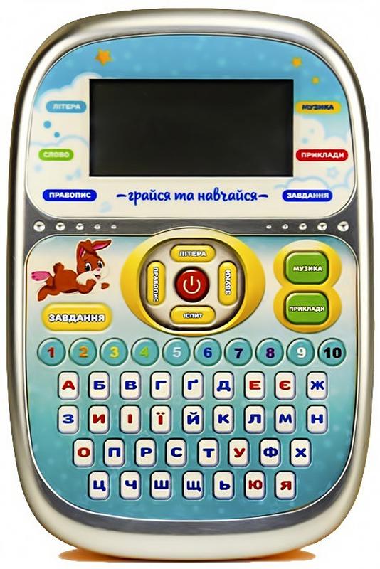 Обучающий детский планшет дарит возможность для обучения в непринужденной атмосфере игры. С ним весело учиться, легко и интересно! Функции планшета: Буквы и цифры -- режим звучания букв и цифр. Звуки -- изучение гласных и согласных звуков. Правописание -- изучение правильного написания слов. Экзамен -- вопросы (планшет предлагает найти букву, цифру и др.). Музыка и мелодии. Задача -- ноутбук предлагает найти пропущенную букву в слове. Планшет озвучен на украинском языке. Работает от 3-х батареек типа ААА (в комплект не входят). Размер планшета 11 * 16,5 см. Размер коробки 20 * 5 * 22 см.