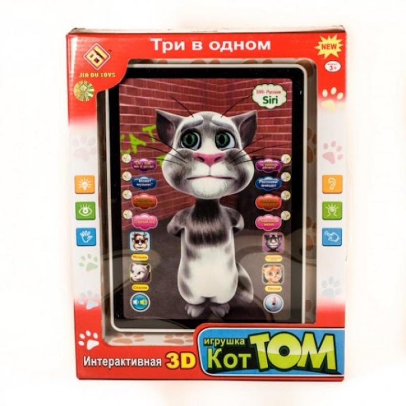 Интерактивный 3D планшет «Говорящий КотТом» - игрушка по мотивам легендарного приложения для смартфонов Talking TomCat. Это замечательное создание будет повторять любые фразы, произнесенные Вами, в своем уникальном стиле. За счет распознавания речи он умеет не только просто повторять ваши слова в смешном исполнении, но и может с Вами разговаривать. Вы попросите его спеть, он споет. Вы попросите его рассказать анекдот, он расскажет. Планшет выполнен в виде объемного сенсора и очень удобен в управлении. Теперь в игрушке встроен чип нового поколения, что делает игрушку в 5 раз эффективнее и быстрее. Использована цифровая обработка сигналов Crystal Voise, повышающая качество звука. По результатам тестирования чистый отчетливый звук в интерактивном планшете ничем не уступает Коту Тому в iPhone. Высококачественная стереокартинка делает изображение кота объемным. В планшете популярные песни, интересные истории, шутки и еще много всего. Планшет распознает речь в пределах 10 метров. Игрушка-планшет, очень напоминающая iPad, удобна в использовании и управлении вашими кончиками пальцев. Вы можете регулировать громкость, а также понажимать на все участки тела кота, услышав при этом разные звуки. Производители использовали систему LED мерцания глаз, чтобы подарить вам новые впечатления от игрушки. Преимущества: * Использованы АВS материалы, что делают игрушку прочной и безопасной. Оборудован подставкой для стоячего положения. * Суперчип. А теперь в игрушке встроен чип нового поколения, который в сравнении с предыдущим, работает в 5 раз быстрее и эффективнее. * Чистый звук. Использована цифровая обработка сигналов, повышающая качество звука. По результатам тестирования, чистый отчетливый звук в интерактивном планшете ничем не уступает Коту Тому. * 3D Вид. Высококачественная стереокартинка делает изображение Кота более объемным. Поэтому вам будет казаться, что Кот будто живой. * Богатое содержание. Популярные песни, интересные истории, шутки и еще много всего. * Суперчувствительность. В пределах 10 м легко распознает вашу речь. * Сенсорное управление. Игрушка-планшет очень удобна в использовании и управлении вашими кончиками пальцев. Вы можете отрегулировать громкость, а также понажимать на все участки тела Тома, услышав при этом разные звуки. * Мерцание глаз. Использована система LED мерцание глаз, чтобы подарить вам новые впечатления от игрушки.