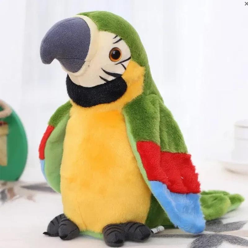 Папужка повторюшка допоможе розвеселити кожного малюка і забути про примхи, і поганий настрій! Строкате плюшеве пташеня володіє унікальною здатністю - записом фраз і різних звуків, які через кілька секунд відтворюються смішним мультяшним голосом. Також під час повторення звукових ефектів, папужка смішно махає крильцями та перекачується з боку на бік. Високоякісний плюш з якого виготовлена іграшка доставить виключно приємні тактильні відчуття, а гіпоалергенний синтепон зробить папужки м'яким та безпечним навіть для найменших користувачів. Іграшка працює від 3-х батарейок типу "ААА" - в комплект не входять. Розміри: - Довжина 11 см - Ширина 11 см - Висота 20 см